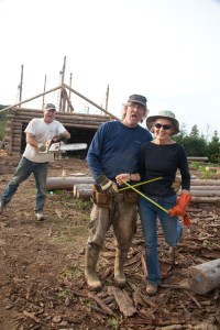 Kim and Chris came out to help us many times over the two years. Tom and Yvonne spent close to a week pitching in doing anything from concrete work to painting and sealing. Thanks guys! Sure it helps bunches to have friends come and help…but it is wonderful to spend time with friends side by side talking, laughing, sometimes struggling and campfires at night. This log cabin will have so very many memories ‘built in’ by the time we get done. Priceless. Kim and Chris have spent hours and hours on our multiple trails down to the river. We hope in the future to build a treehouse closer to the river down one of those trails.